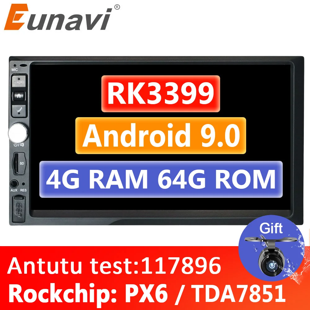 FREE SHIPPING Eunavi 2 Din 7'' TDA7851 Android 9.0 4G 64G Octa core Universal Car Radio Audio Stereo GPS navigati