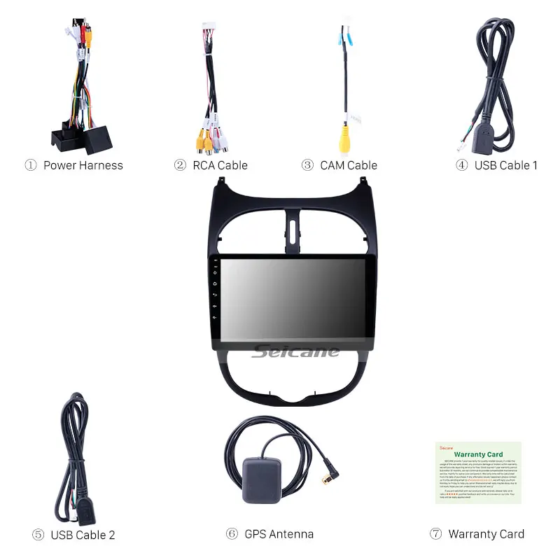 - Product name : Seicane GPS Autoradio HD Touchscreen Car Radio Audio 9'' Android 8.1 for Peugeot 206 2000-2016 AUX